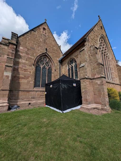 Corrine Jackel Conservation utilised the Restoratives ThermaLase, a 200W Dual-Axis Fibre laser. The unit comprises of a compact "suitcase" laser weighing 30kg, which allowed for easy transportation across church grounds. The system is also versatile, running on both 110v and 230v domestic power supplies.