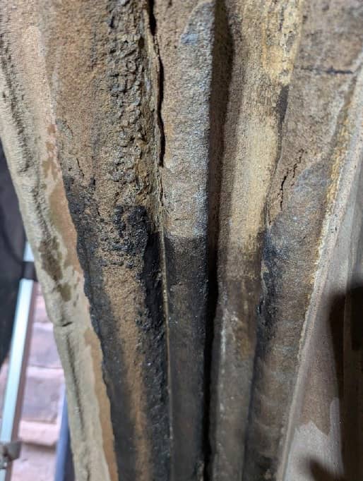 The laser cleaning system seemed the obvious choice for the specific application due to its non-contact and non-abrasive nature. For heavy deposits, including a thick build-up of carbon and an unknown oily residue, the laser was operated at its maximum 200W power. Power settings were subsequently reduced for more delicate, friable sections to ensure no harm came to the substrate.